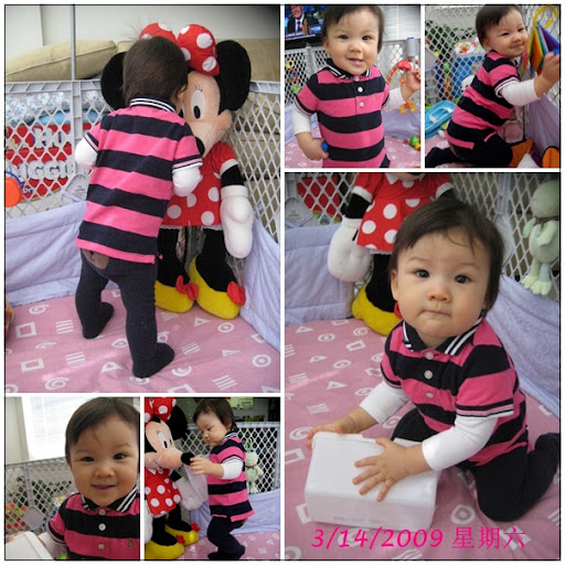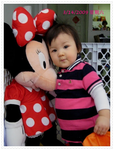 俺们家小托乖的样子。我说你女朋友呢?小托同学就紧靠着米妮让我给照合影,没出息的!
