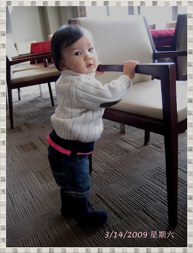就是这样一个普通的沙发椅子,小托也能握着玩半天,对于他来讲,这里一切都好新奇啊。比起家里的动物乐园来,视野可不宽广多了?看来时常带孩子去陌生的地方,是能满足他们日益暴涨的好奇心的。