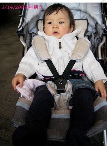 如果你抱也抱不动了,又没有老鹰捉小鸡的体力,办法就又一个,就是放在推车里,系上安全带。我叫你还哪儿疯去你!