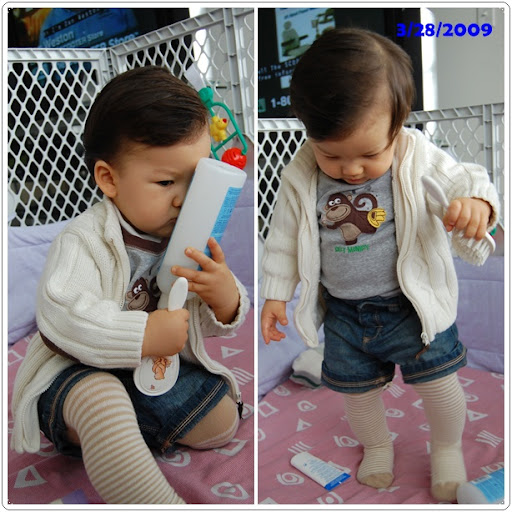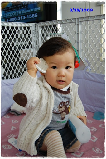 宝宝梳头11个月混血儿理发师擦脸油防晒出门打扮臭美 |