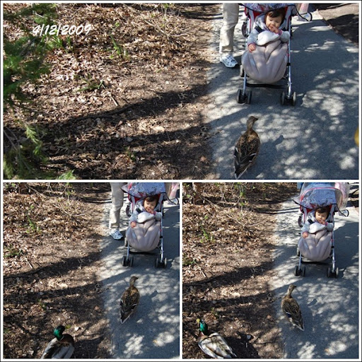 这个是小托第二个比较熟悉的动物系列,咔咔(对他来说,就是鸭子的意思)。公园里的咔咔好多啊。(咔咔是小托洗澡的时候放在浴盆里的塑料玩具哈,今天眼见为实了)还看到了一只非常美丽的公孔雀,可惜没精打采的不开屏。