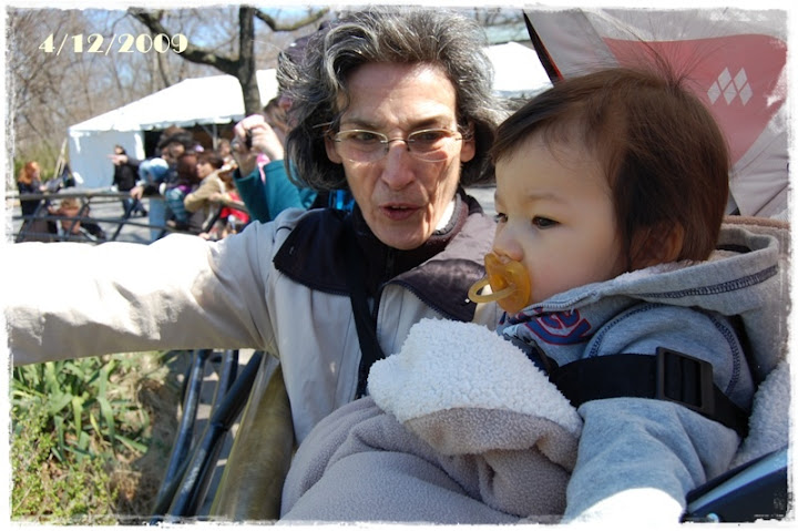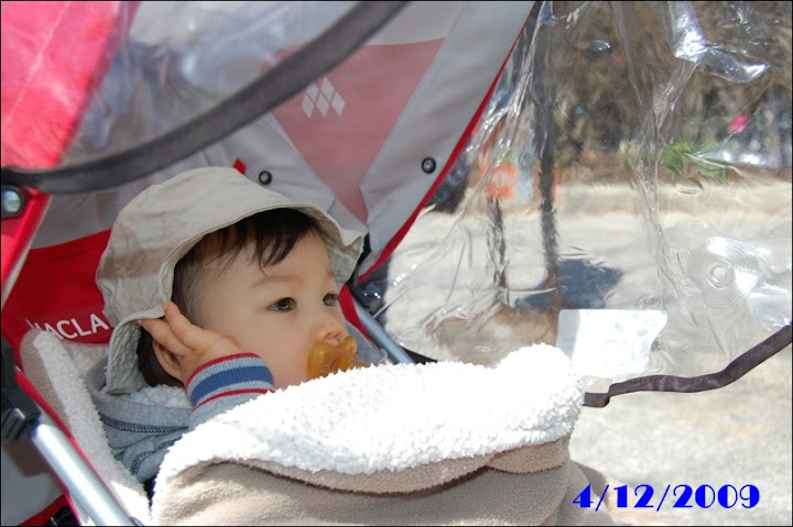 今天是easter(复活节)。公园里人狂多,一半都是犹太人。托爸说犹太人复活节不能看电视,就都拖家带口的来动物园了。天气还算清朗,阳光还算明媚,就是风大,所以虽然是春意盎然,俺们也把小托双重保护,遮阳帽和挡风的塑料布,一样也不能少的哈。