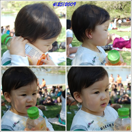 在华纳大厦的楼下超市买好野餐的东东,发现找不到小托同学的尿布包。婆婆以为我带了,我以为老公带了,三个和尚没水喝。于是赶紧去附近的药店给小托同学买尿布买wiper买辅食买消毒纸巾.....真够折腾的,好不容易到了公园门口,迎面看到的全是人啊。