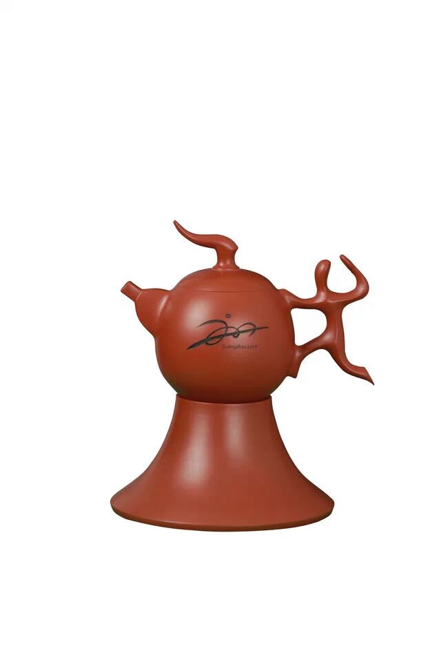 三是由制作工艺及造型等决定。如果说技术职称和社会认可度是壶的本体以外的因素,那么一件手拉坯朱泥壶工艺价值的高低,自然要看其自身的特点。章燕明的手拉坯朱泥壶,以独特的选料、造型、釉面、薄度、良好的透气性和密封度,保持壶体美观,釉面光洁,具有壶璧薄如纸、壶体声如磬的超群效果,在国内制壶技术上堪称一流。“燕明茶壶”含有人体所需的铁元素等矿物质,泡出的茶不仅更加清香沁脾,而且还有美容、养颜之功效。使“燕明茶壶”更具“严正美”、“材质美”、“形态美”、“整体美”,尤其是有“自然美”和“功能美”,既造型漂亮,又实用。