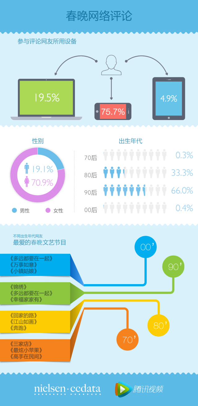 2.腾讯视频观看春晚网友的134791条评论及腾讯视频1642万网友投票数据(截止2月23日 12:00)。