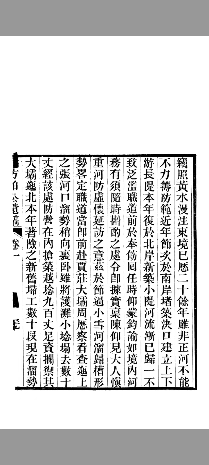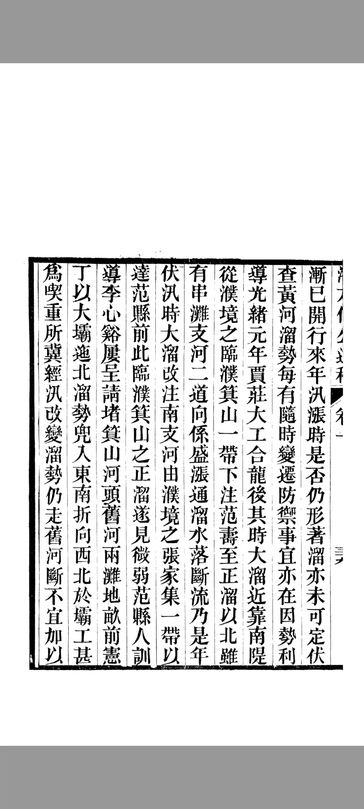 窃照黄水漫注东境,已历二十余年。虽非正河,不能不力筹防范。近年节次于南岸堵筑决口,建立上下游长堤。本年复于北岸新筑小堤,河流渐已归一,不致泛滥。