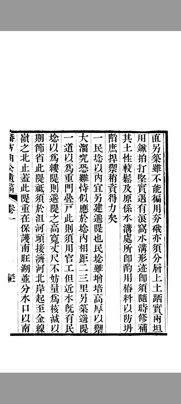 故缺口即能堵合,正复处处堪虞,应再劝谕加高培厚,务以高一丈顶宽一丈,外坦二收,内坦一收,共底宽四丈。因系民力已从节省,必须一律不准再减。
