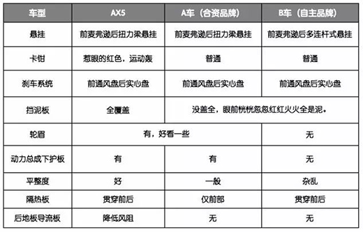 更为关键的是,无论AX3、AX5还是AX7,他们的竞争对手要不卖的是性价比,要不卖的是品牌溢价。作为AX车系的代表者,像东风风神AX5这么个十万级别的车型(一般不推荐乞丐版),抛开性价比来谈品质,或者以三车对拆的方式来自证品质,是不是一开始就把故事讲歪了呢?