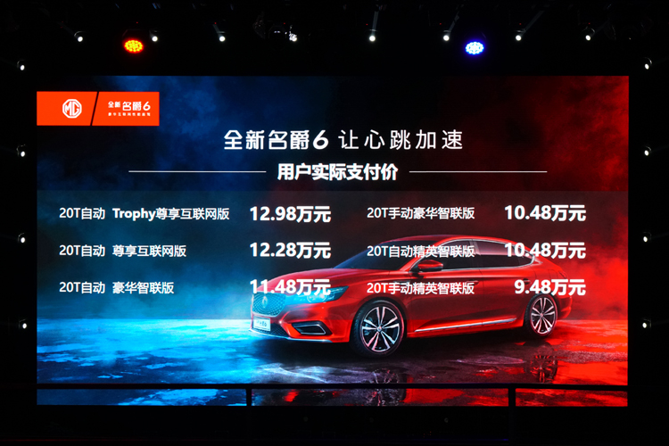 作为上汽“感性力”概念车MG E-motion的首款量产车型,全新名爵6正式在南京宣布上市。此次上市共有六款车型,官方指导价为9.68-13.28万元。
