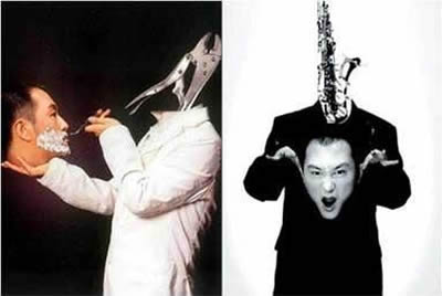 中国著名歌星高枫,在自己的唱片《美丽新世界》封面上,按照自己的意愿把照片中自己的头割掉,手拿一根管子插起自己的头,专辑发行其间就因病死去,临死前,他的头上果真插满了管子。