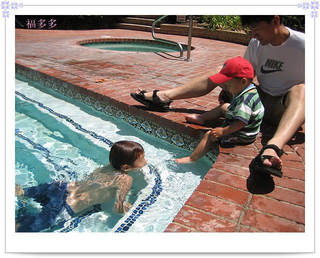 光顾吃了,吃饭的照片就省了。饭后MAX去游泳了,多多坐在游泳池旁边看着哥哥。