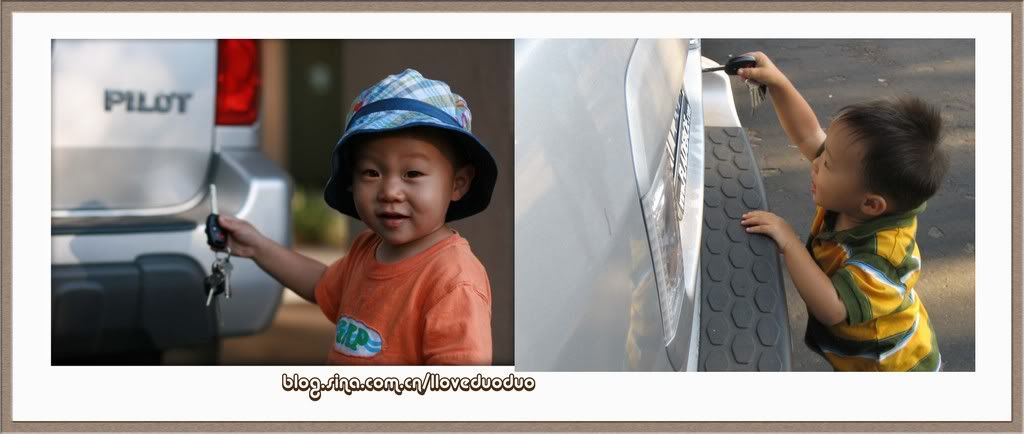 目前小人儿的最爱是钥匙和冰箱。 http://i210.photobucket.com/albums/bb92/njfjyy2005/key.jpg每天下午去幼儿园接到他后第一件事就是跟我要钥匙,拿到后就如获至宝一般喜悦。从幼儿园回到家的全程,他要拿钥匙开车门,然后去开信箱,最后是开家门。从一串钥匙中,他能准确地把每把钥匙对号入座,而且现在可以把车锁打开然后说:“拔,拔,拔”再把钥匙拔出来(受拔萝卜这个故事的启发)。
