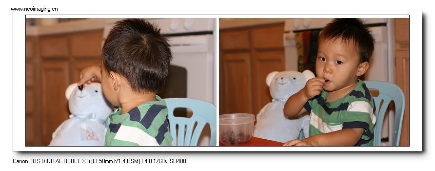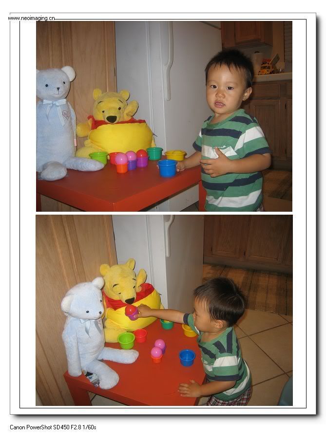 偏偏我的儿子也开始喜欢上了这个游戏。学校的大厅里有一个儿童模拟厨房,冰箱,微波炉,炉灶,各种做饭的工具应有尽有。多多特喜欢在那里玩做饭的游戏。我每天接他的时候必须抱着他出校门,要不然他准在儿童厨房那里逗留,没有半个小时他决不回家。