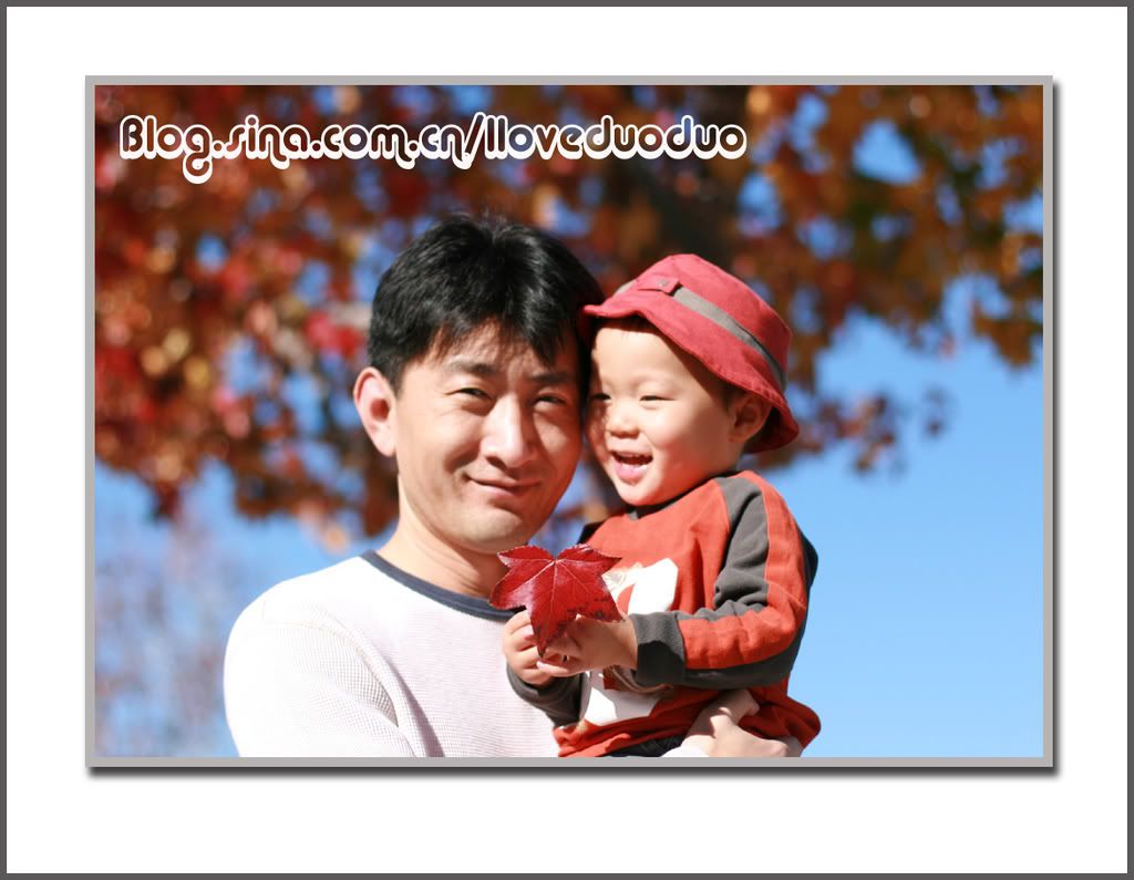 冬日的阳光下,绚烂的红色里,有着父子俩幸福的笑容...
