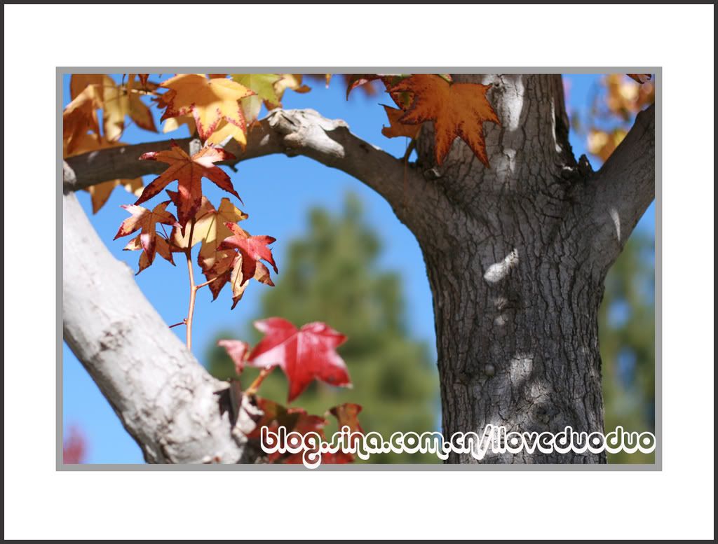 南方的天气比起北方来相对要暖和许多。我上下班经过的路上种的树有点象枫树的品种,但是要到11月底至12月份叶子才会变红。今年又是一个暖冬,所以都到了12月底树叶还象是秋天的样子,红红的颜色给冬日添色不少。
