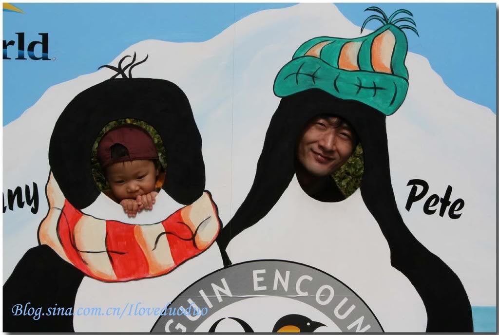 饭后应多多的要求去看企鹅。大多数企鹅在那里一动不动,跟在拉斯维加斯看的假企鹅没什么两样。个子大的企鹅身上都是黄色的油脂。只有一些小企鹅在一扭一扭地走动,那个笨拙的样子很是可爱。