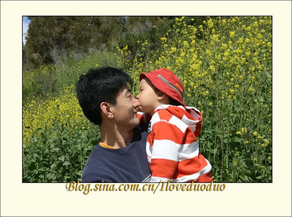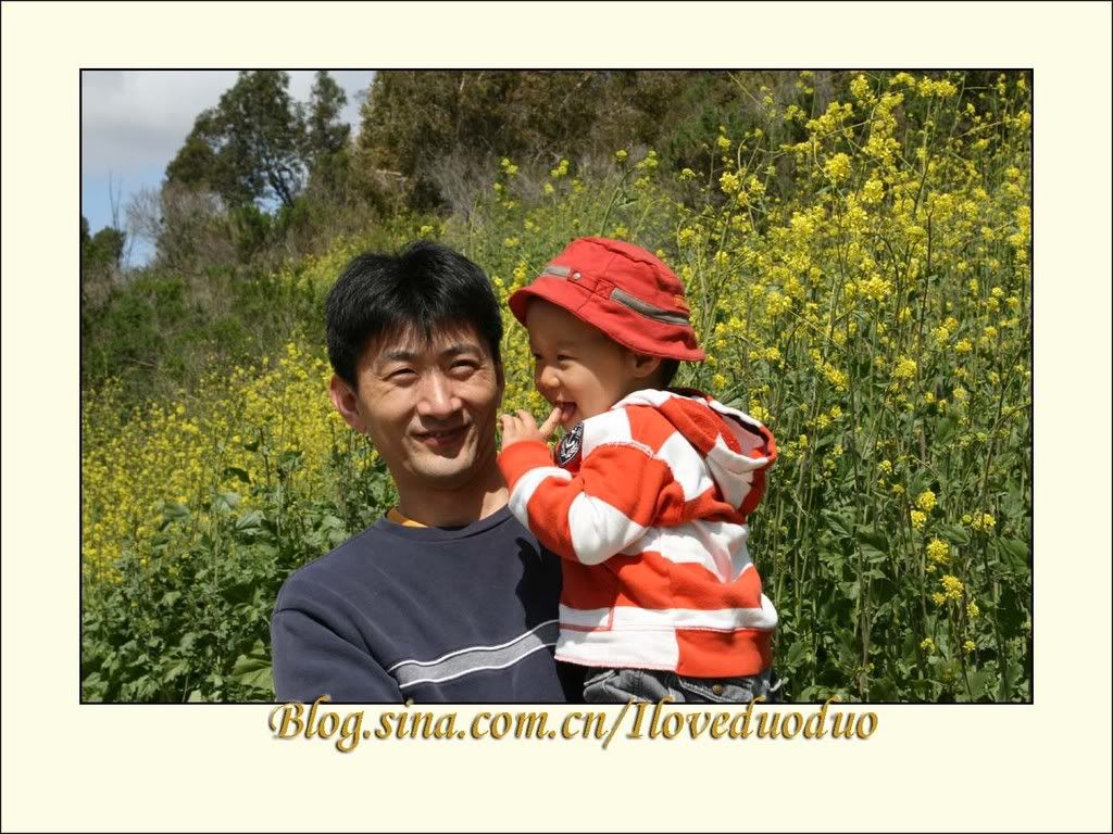 公园里还有很多黄色的雏菊和一片片嫩黄的野花。春天就在这一片片的花丛中,在儿子和他老爸的笑脸中了。