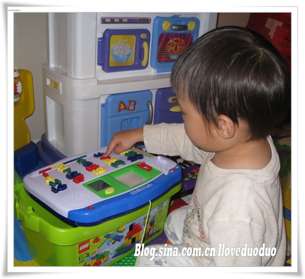 现在种种迹象表明多多正在步入数字和字母的敏感期。尤其是对数字特别感兴趣。我就趁机把数字数量一起教,给他买了配合学习数字的书和玩具。他最喜欢和我一起数数,看书时一起数苹果,拿信的时候念信箱上的数字,散步的时候数各家门口的门牌号。。。而且还会跟我讨价还价了。我说只能吃一块饼干,人家伸出手指头说要two,吃完后还要three.26个字母中多多最喜欢N,这也难怪,N是他名字的第一个字母。还有就是爸爸妈妈名字,看到Y就说妈妈,F说爸爸(Y和F是爸爸妈妈姓的第一个字母)。从来没教过他认字,目前只认识自己的名字Nathan,比大字不识强那么
