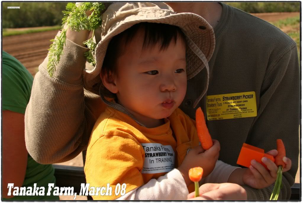 对摘草莓已经惦记了有一阵子了,今天终于如愿以偿了。摘草莓的Tanaka Farm在以前的博文中有过介绍。和上次摘西瓜的行程差不多,我们坐着大型的拖拉机在农场里转了一大圈,在开始采摘草莓之前品尝了荷兰豆,芹菜,胡萝卜,菠菜和大葱。多多每种东西都吃了,除了不太爱吃芹菜外,每种都吃的津津有味,连大葱都吃了,弄得后来满嘴的大葱味。多多对水果和蔬菜的热爱,是我自愧不如的。