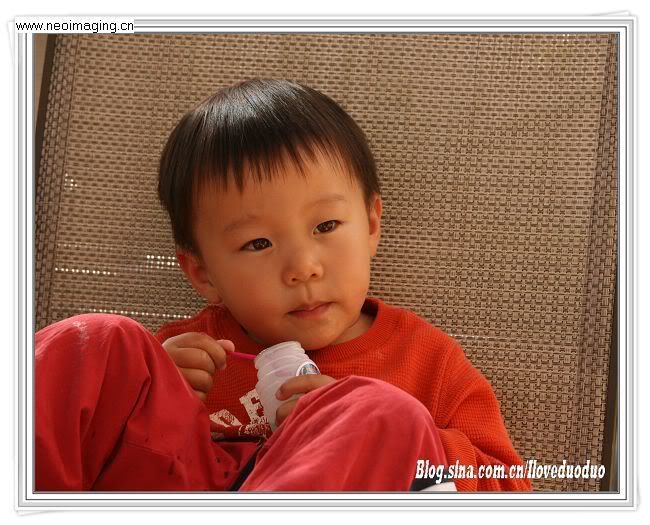 随着语言的丰富,小人变得越来越sweet了。小嘴象摸了蜜一般,动不动就来一句“辛苦妈妈/爸爸””Thank you爸爸/妈妈"。跟你要东西的时候会用软软的声音甜甜地说:“May I have it?"。问他问题的时候经常装出一副特无辜的样子,两手一摊说:"I don't know." 更有趣的是,小人学会了一句“I am not happy anymore",说完后还装出一副不高兴的样子,超级好笑。总之,听话的时候小人就是可爱至极的小甜心,说出的话也宛如美妙的天籁之音。不过一旦TT(Terrible Two)的症状发作,我的耳边就充斥着:“No...." ”No Way!"; "I don't like it"; "I don't want it",让他做什么人家就铁了心坚决说不,让你抓狂没商量。好在我感觉这TT的势头有些减弱。但是人家不是说:"Terrible two, impossible three"吗?看来还是要做好持久战的准备,时刻迎接新一轮的挑战。