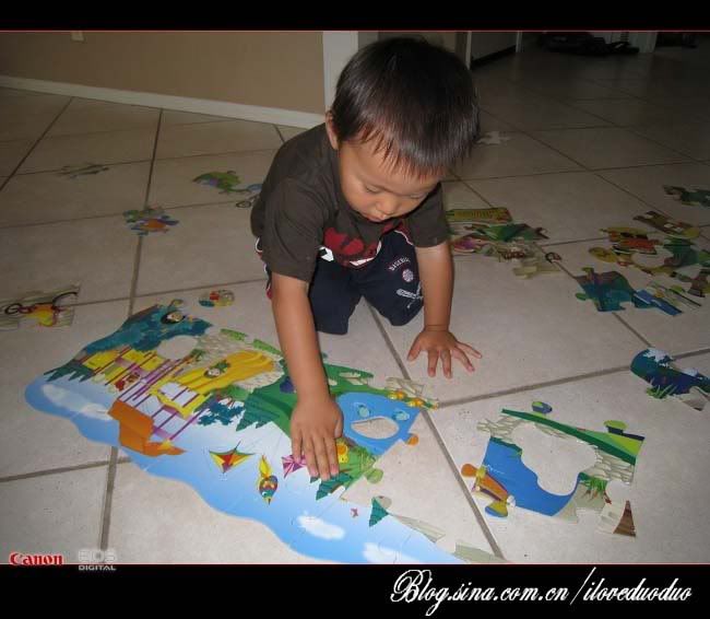 看了一些在美国华人妈妈的博客,发现他们的孩子和多多差不多大都已经开始上兴趣班了。我觉得这么小的孩子就应该去尽情地玩,带他接触大自然,不必刻意去学什么东西。看了人家都去学东西了,我也开始有所动摇。马上发邮件给我朋友咨询一下是否可以学钢琴了,这位朋友的太太现在专职教钢琴。几天后,朋友打来电话说至少五岁才能开始学钢琴,他自己的女儿9岁才正式开始学。而且他说画画也不行,太早。另一位朋友听了我的问题“嘲笑”我是望子成龙。最后问了一圈,感觉这么大的孩子就能学游泳,对小脑的发育有好处。于是我们带着多多到游泳学校参观了一圈,里面有很多象他这么大的孩子,问他要不要学,人家坚决地说:”不要。“后来和多爸一商量,还是自己先带他多去游泳池里玩玩完全不怕水后再说吧。就这样我又回到了起点,决定暂时什么都不学了,反正在幼儿园也能学到很多东西。