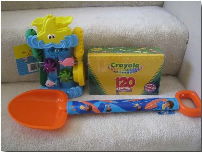 玩沙的两个玩具加起来3刀,120根Crayola蜡笔5刀。