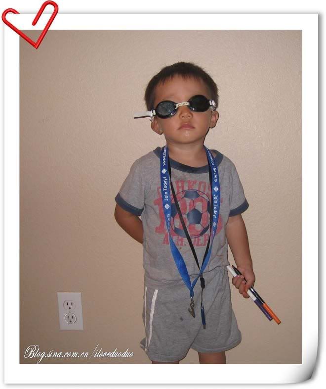 三岁前多多做的最惊天的一件事就是用他的玩具棒球棍砸坏了我的LCD液晶电视,1000多美金的东西就这样被一个三岁的小屁孩报废了。当时把我气的。。。就不说了。罚站面壁了15分钟左右,眼泪也没少流。后来我火消了,问他为什么,他说他看到鲨鱼咬NEMO的爸爸,所以他去打鲨鱼(当时他正在看海底总动员Finding Nemo). 后来我跟我同事抱怨此事,他跟我说反正电视已经坏了,想点积极的东西,这件事说明第一他有正义感,第二说明他力气大。如此的阿Q精神!