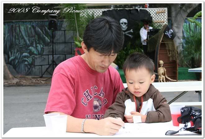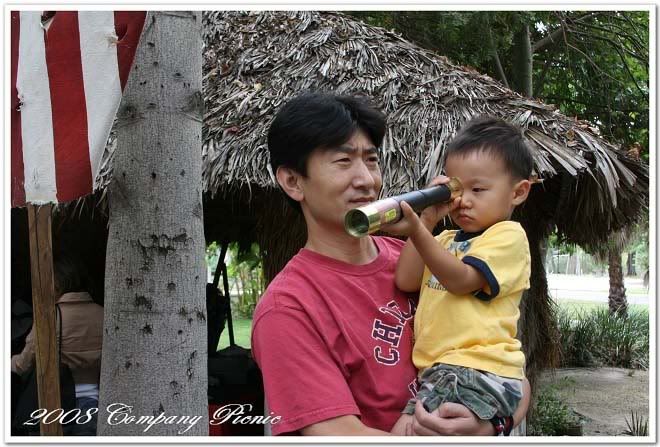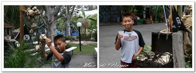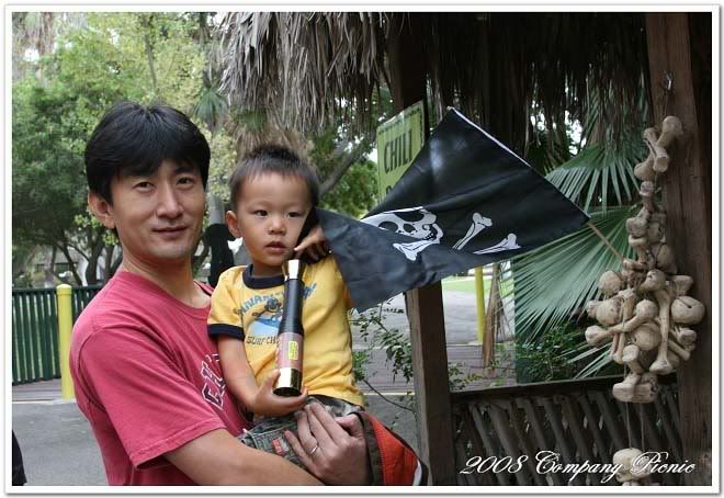 今年是我们第三次参加公司的野炊活动,活动食物基本和往年一样,只是今年的活动以海盗为风格。随处可见飘扬的海盗旗,宝藏箱,骷髅骨。。。大概因为万圣节将近的原因,所以今年选择这样的主题。进门时每个人还发一个海盗帽子。多多表现很不好,粘在爸爸身上,谁也不理,什么也不玩,不提也罢。倒是MAX玩了蹦床,海盗船,两个胳膊上一边一个纹身。在饮料机前打饮料的时候还问我,这都不花钱吗?我说都是免费的。对免费的吃喝玩乐,MAX感觉是“很酷”。多多唯一的收获是得到了一个向往已久的telescope.