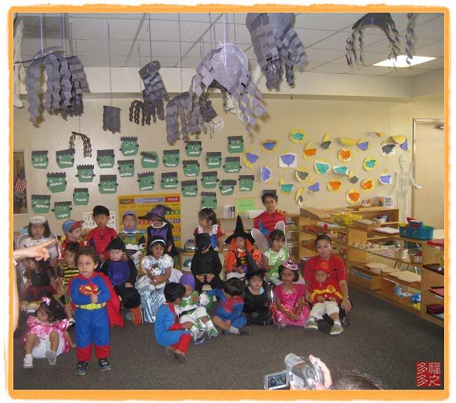 还是女孩子们的打扮可爱,男孩子就比较雷同了。仔细一看,多多他们班有五个男生都是装扮成了spiderman(蜘蛛侠)或superman(超人)