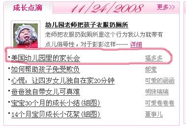 I really appreciate it. 这种感谢完全出自内心,我真的很感谢老师们对多多的培养,让他在各个方面都健康地发展。老师说多多各个方面包括学习和社交都符合这个年龄(3-4岁)的要求(age-appropriate),而且在有些方面还有超前。我说看了进度表,没相当三岁的孩子在学校学这么多东西。老师说她们的目的是把孩子们培养成全面(well rounded)的人材。我觉得这一点应该是美国学校教育的一个很大的优点。老师问我有没有什么问题,我主要问了多多吃饭,睡午觉,和交朋友方面。在午觉方面,老师说多多现在正处在一个过渡期,一半时间睡,一半不睡。我表达了还是希望老师尽量让他睡午觉,老师也觉得他刚三岁还是应该睡午觉,她们会尽力。还有老师很鼓励双语教育,认为我们在家要尽量讲中文,不会造成中英文的混淆。她说她们小时候没有这么多元化的文化,这样的机会要很好地把握。