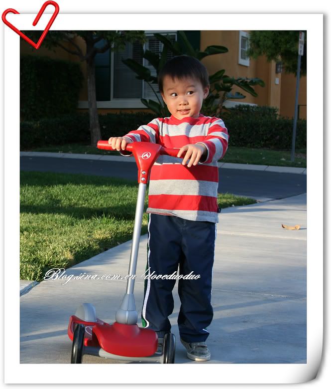 猫的命运:一日出门时看见邻居院子旁边有一只猫,多多喊着:“Cat, what are you doing there?“(猫,你在那里干什么呢)?。猫看见越走越近的小多,风一样地跑了。多多跟我说:”He is scared (它害怕了)。不一会儿,又看到了那只猫正穿过马路,多多说:“Mommy, he needs to be careful crossing the street. Otherwise, cars will crash him. And he will die." (妈妈,他过马路的时候应该要小心,要不然车就把他撞了,他就会死了)。希望那只猫的命运不要象多多描述的那么残。不过多多的这番话前因后果再加上转折词otherwise, 说的还真挺有逻辑的。