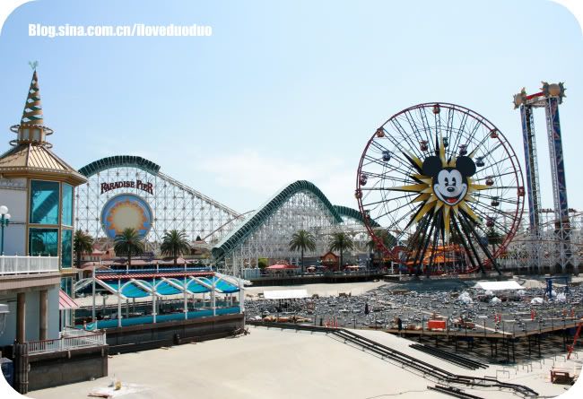 加州探险乐园Disney's California Adventure是DISNEY公司的一个主题公园,就座落在加州迪斯尼乐园的对面,买了票向左走就是迪斯尼乐园,向右走就是加州探险乐园。