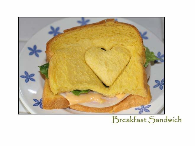 咱不气馁,周日早晨继续保持着高涨的热情给儿子做营养早餐三明治。买火鸡肉片(turkey slice)的时候我还特意挑了不含亚硝酸钠的品牌,奶酪片是卡夫的(KRAFT).我先是用toaster把面包片烤成金黄色,趁热加入奶酪片让它融化,在放上火鸡肉片和生菜,最后用cookie cutter在上面印了一个心型。小多不喜欢奶制品,这点遗传了我,我也是用心良苦想尽办法给他的食物中增加钙的来源。可人家不领情,好说歹说才吃了一半。星期一早餐再上这个三明治,人家就吃了几口,跟我说不喜欢这个口味。此为挫折三。