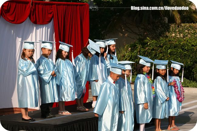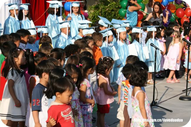 其实多多的幼儿园每年六月都有毕业典礼,但今年却是我第一次观看毕业典礼的仪式。多多的幼儿园分为toddler(1-2岁), preschool(3-5岁), kindergarden(5-6岁,可能等同国内的学前班)。毕业典礼除了toddler班不参加以外,preschool和 kindergarden都有节目表演。Kindergarden班上的小朋友要告别幼儿园成为一年级的小豆包了,他们每人都穿着正式的毕业服,戴着毕业帽,俨然一个个小博士的样子。