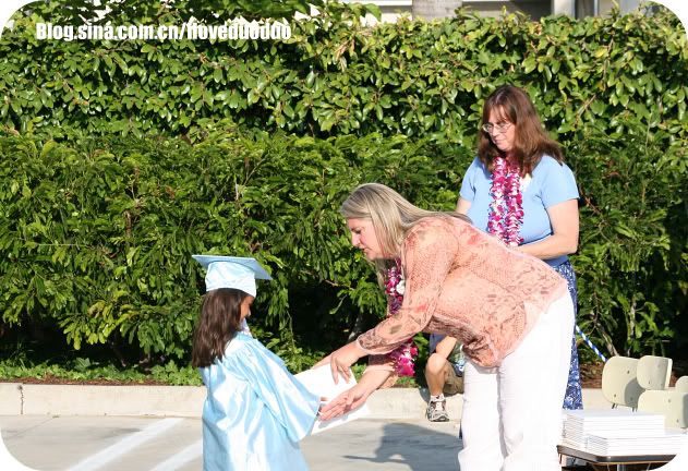 开始发毕业证书,每个孩子出场都有同样的步调,有点象婚礼进行曲响起新娘走红地毯的感觉。