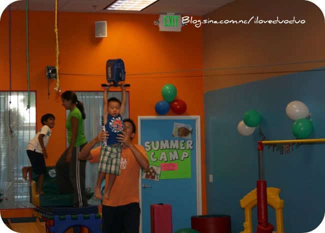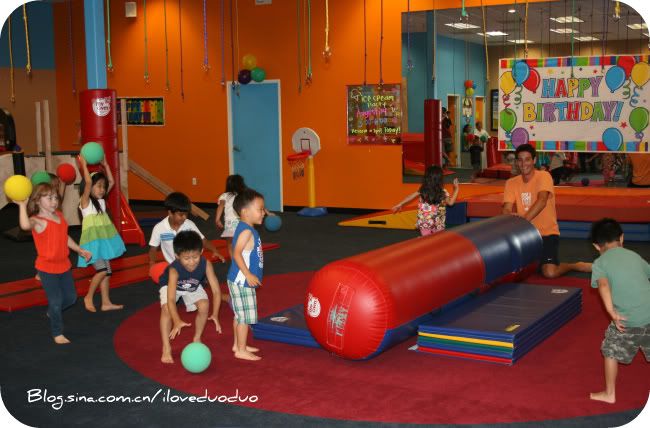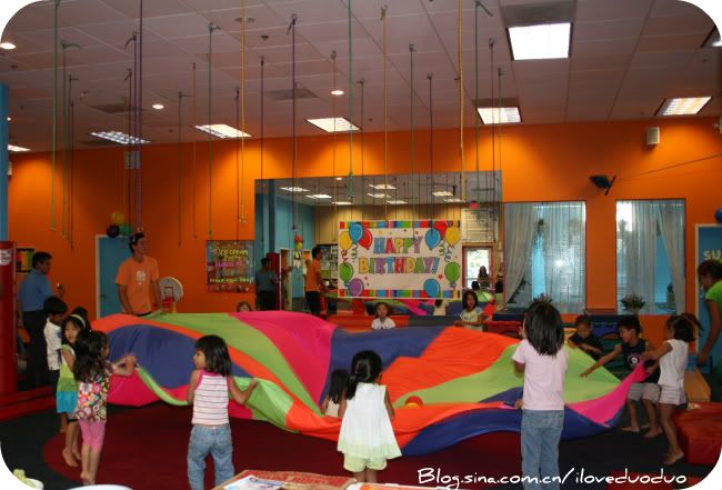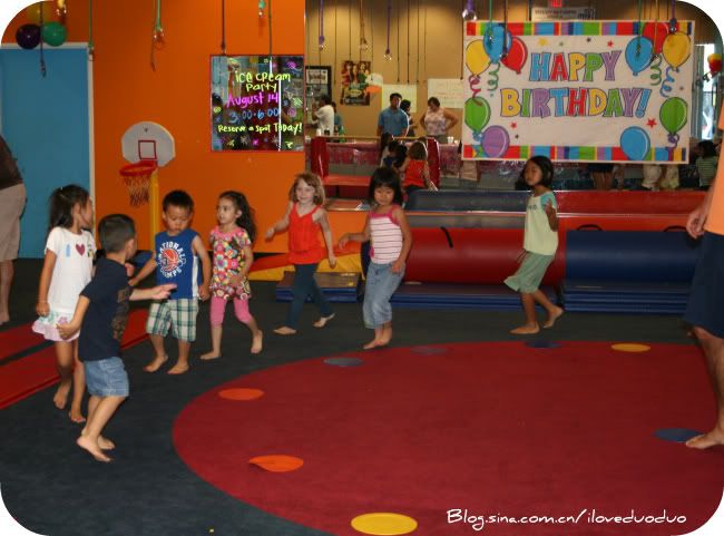 Party是在My Gym办的,一个儿童体操房。感觉好的原因主要是这里的party host(Matt)很风趣. Matt就象个大哥哥一样,特别能带动这帮小孩子们的情绪,跟着他做各种各样的游戏。我们这些陪同的家长们则是在一边聊天,平常送他上幼儿园的时候很匆匆,难得有这样的机会跟家长们交流。一聊才发现我认识的多多班上的小朋友都去学游泳,而且都是去同一所学校游泳。还有就是交换去哪里给孩子办什么样的生日party的信息,哪里订的蛋糕既物美又价廉。