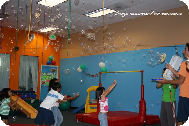 吃完蛋糕后,Matt说还有一个惊喜。原来是无数的泡泡,此时此刻,孩子们High到了极点。