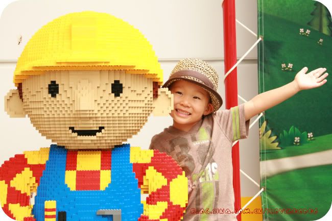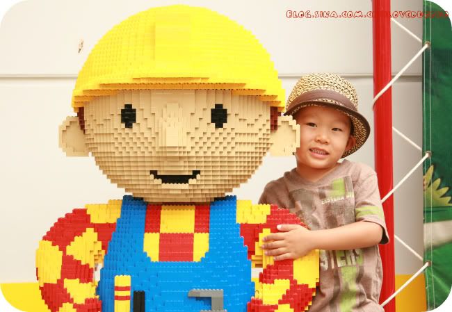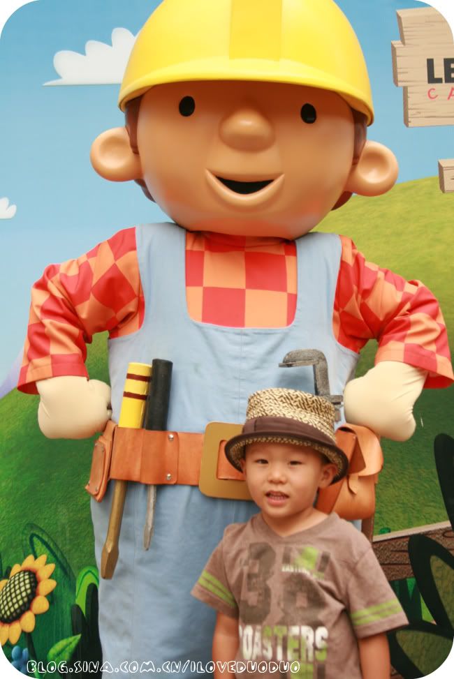 下面的项目是去看新推出的Bob the builder(小建筑师巴布) 4-D 立体电影。还有意外收获就是除了看到积木做的Bob,而且还看到了真的Bob并和他合影留念了。那个4D挺好看,讲的是Bob和他的工程队建造云宵飞车的故事。