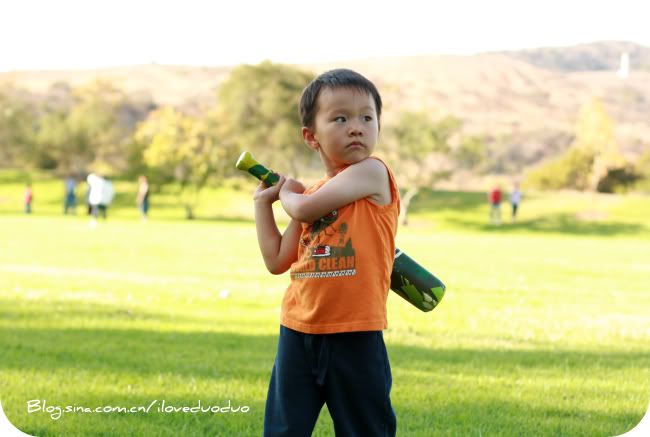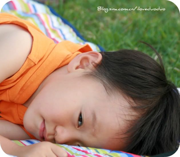 公园里有大片的草地,走过南瓜地后,我们就来到草地上,多爸多多运动,我和老妈休息.