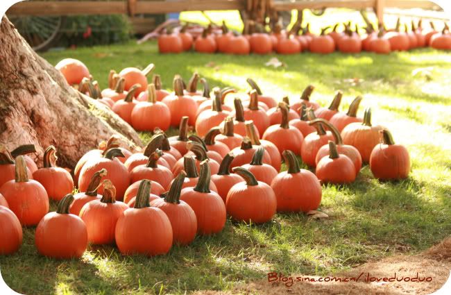我觉得南加的秋天的代言"人"是丰收的南瓜,看到了市场上,田地里大大小小的南瓜就意味着秋天来了,小朋友们向往的万圣节也就在眼前了.