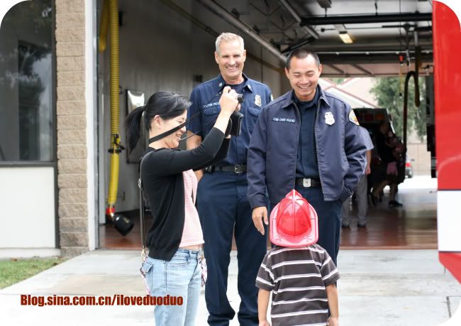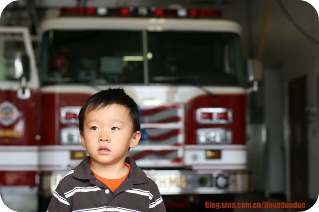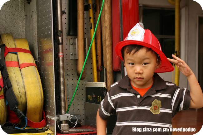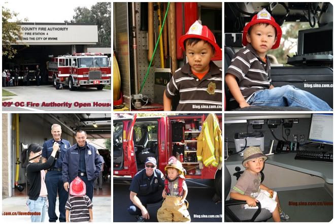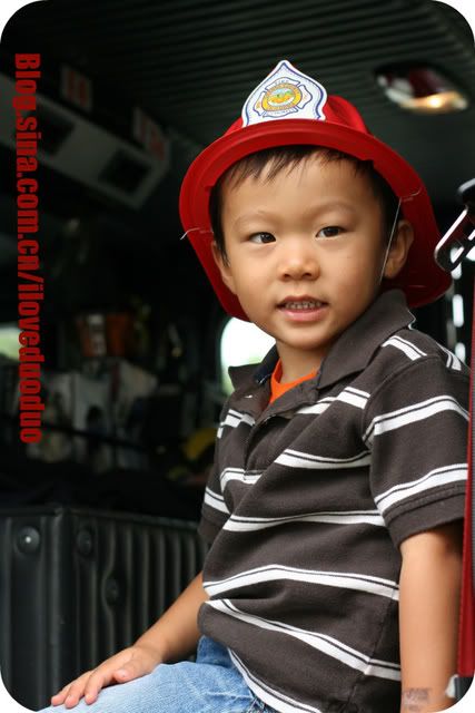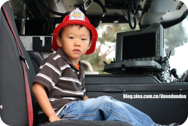 第一次开放日是10月3日,在我们附近一个比较大的消防大队,那里面平常也是培训消防员的基地。那天我正好有摄影课去不了。我只能拜托多爸和多姥姥用他们的小卡机给我照些照片来看。据他们说,那次的活动规模很大,也很精彩,还有免费的午餐呢。多多坐了消防车,还坐上了梦寐以求的警车,看了灭火的现场表演,消防员阿姨还教他拿着水管灭火,还穿上了消防员叔叔的制服和大靴子。照片的质量不是特好,据姥姥说很多都是小多自己照的,难怪我看到了很多张不知要表达什么的乱七八糟的人头照呢。