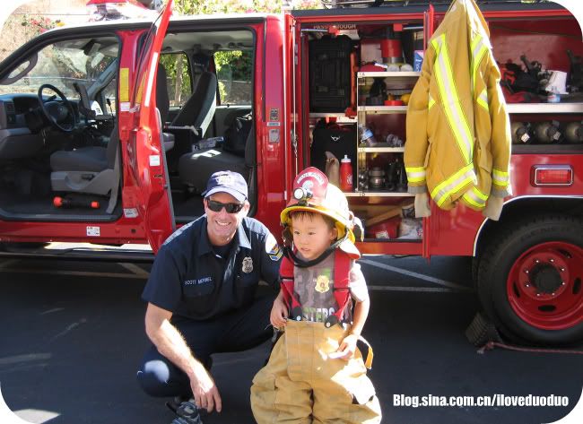 过去的两个星期,喜爱消防车,消防员的小多可是过足了瘾。因为我们住的地方连续两周都有消防大队或者支队的公众开放日(orange county fire authority open house)。