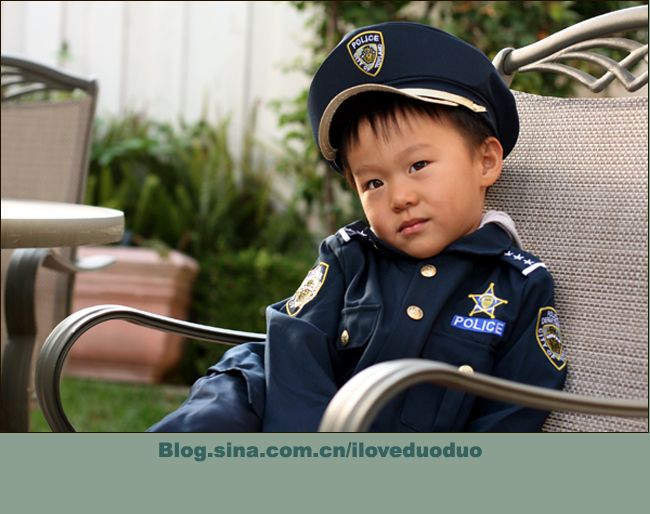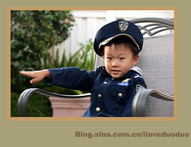 警察制服老早就买好了,对我而言衣服的质量很次,但这丝毫不影响小多对这套衣服的热情,买来就穿在身上不想脱下来。小警察的梦想终于成真了。