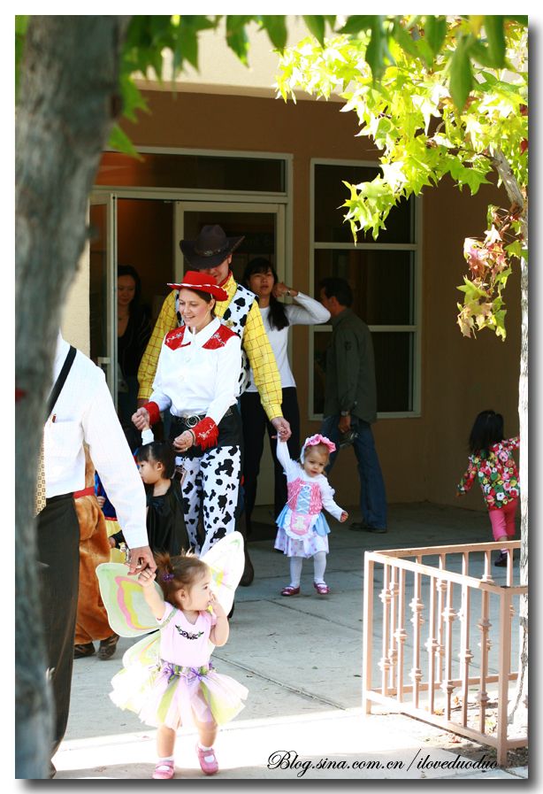 Toddler小朋友的打扮也十分可爱,有些孩子由家长陪同.小多以前的老师和她的老公一起上阵,牛仔之家齐出场.看那只小蝴蝶手还在嘴里呢.
