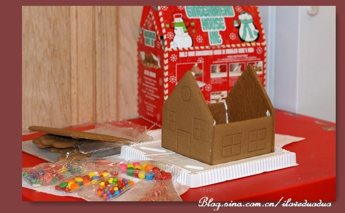 为了继续去年的传统, 今年我们又搬了个姜饼屋DIY的盒子回家.估计这世界上应该没有孩子不喜欢搭建姜饼屋的,这是一个既好玩,又好看,而且还好吃的手工活动. 先用糖霜(icing)打地基,然后把房屋的四壁用糖霜粘起来,最后盖上屋顶.说起来挺简单,每次做起来都不是那么容易呢.经常出现顶裂墙倒的意外事故,事故一出,就要用更多的糖霜来补救.