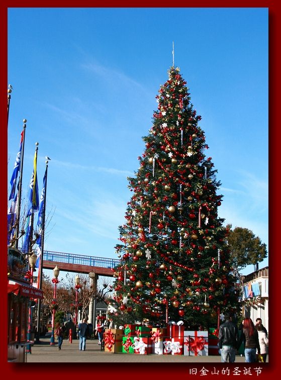 39号码头(Pier 39)入口的广场上竖起了巨大的圣诞树.