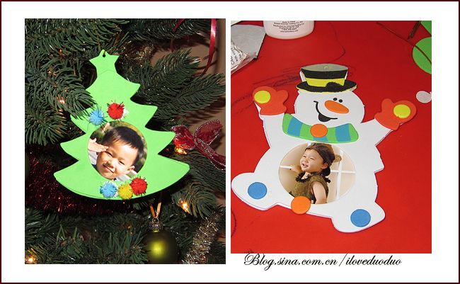 这个是我买的现成的材料,两片同样形状的材料,把上面的纸揭下来就有了粘性.把照片剪成圆性夹在两片材料之间就做好了. 这个可以用来做圣诞树的小挂饰.