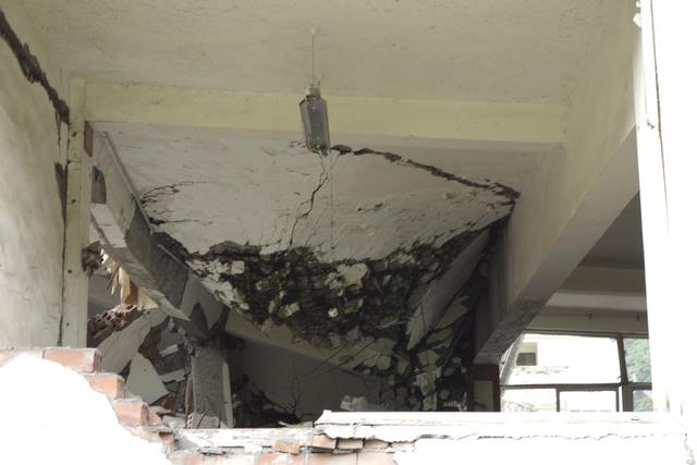 完全倒塌成一堆废墟的5层楼的学生公寓