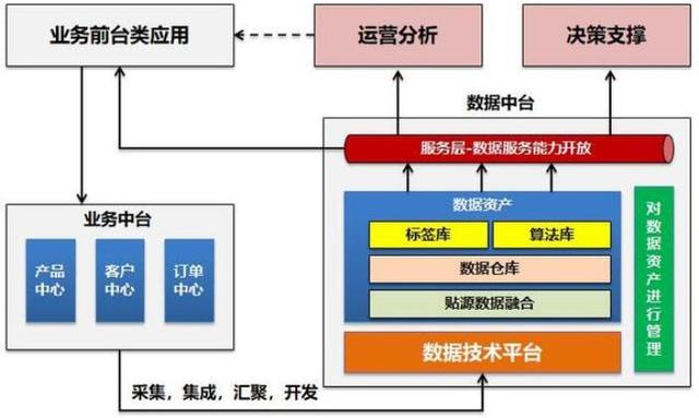 1)数据中台解决数据整合的问题,将整合后的数据服务能力统一提供给前台。