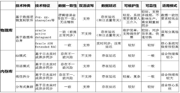 对于数据库本身的技术种类,对双活读写的支持,数据延迟的大小,可靠性等可以参考上图进一步了解。在考虑双活数据库设计的时候可以重点参考。